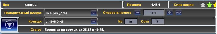 28.12 08:23 - Армия хантес вернется на соту zx-zx (4.45.1) с соты Netherstorm (4.1.1) игрока Sotild через 2ч. 2м. 8с.. Будет разгруженно: К: 0 НК: 0 Е: 0 СЭ: 0.