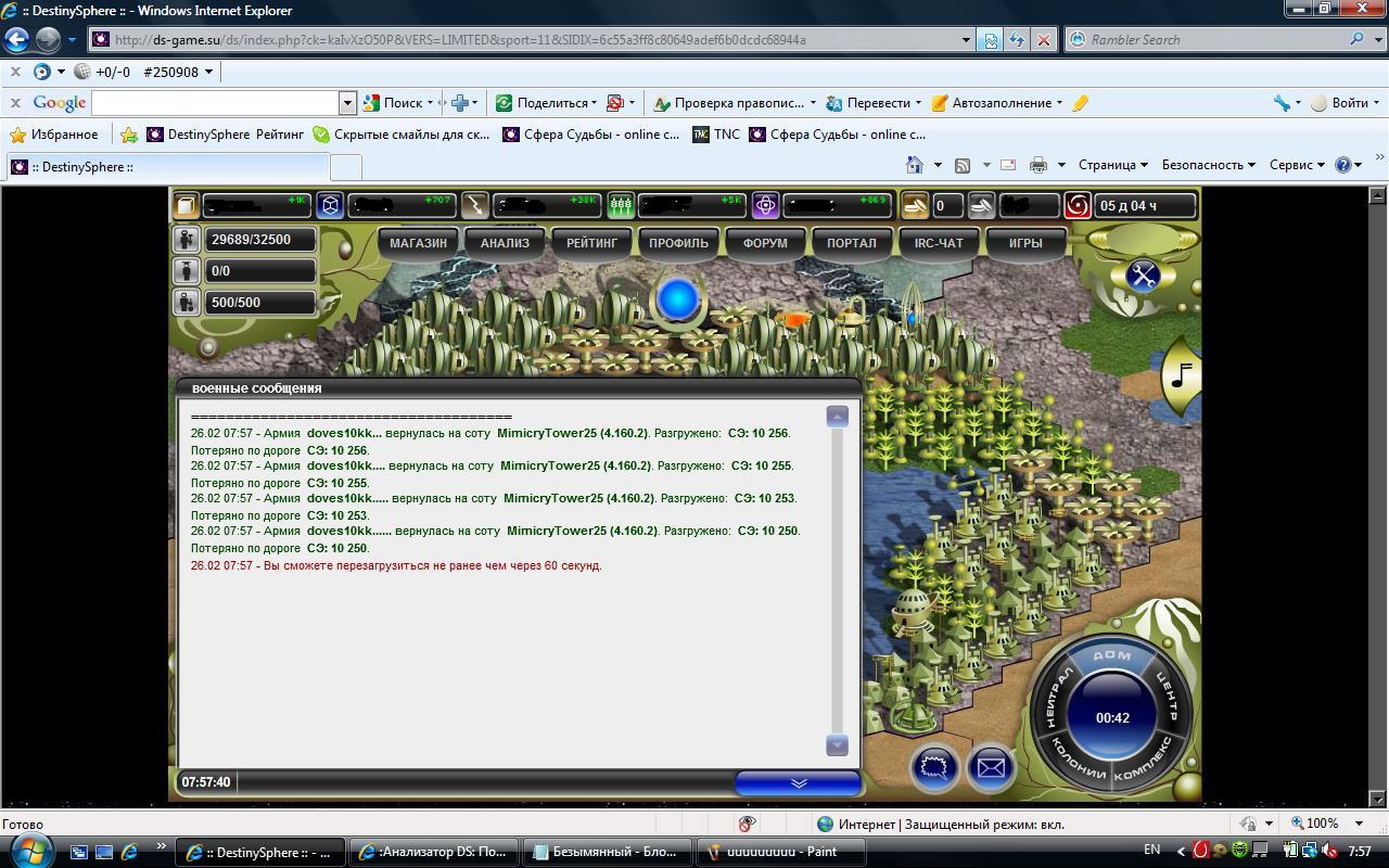 - 7ч30мин попытался перегнать на другую соту ресурс непомещающийся в складах, тут было много 5ти секундных ошибок, из-за чего ресурсы я отправлял полторы-две минуты