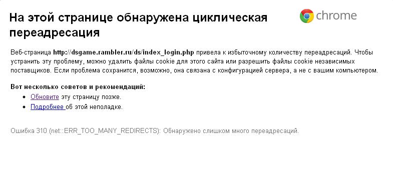 "Неверное перенаправление на странице