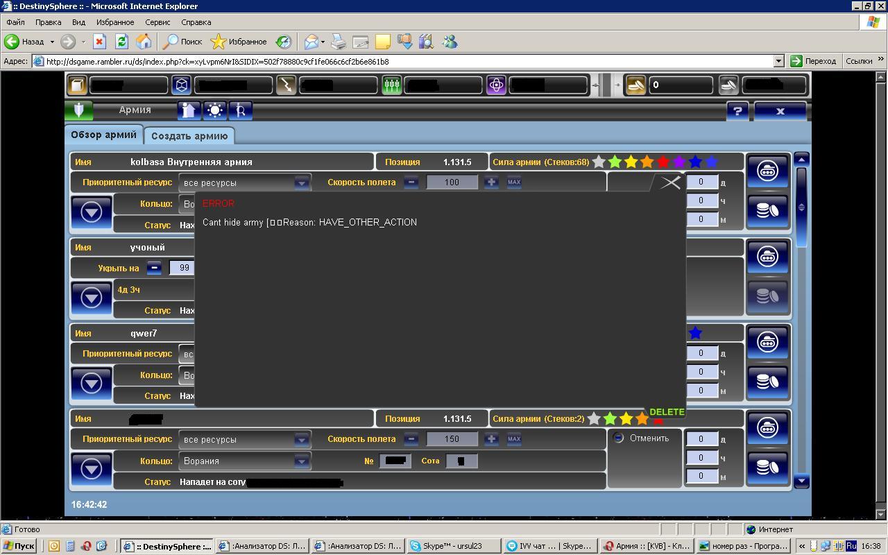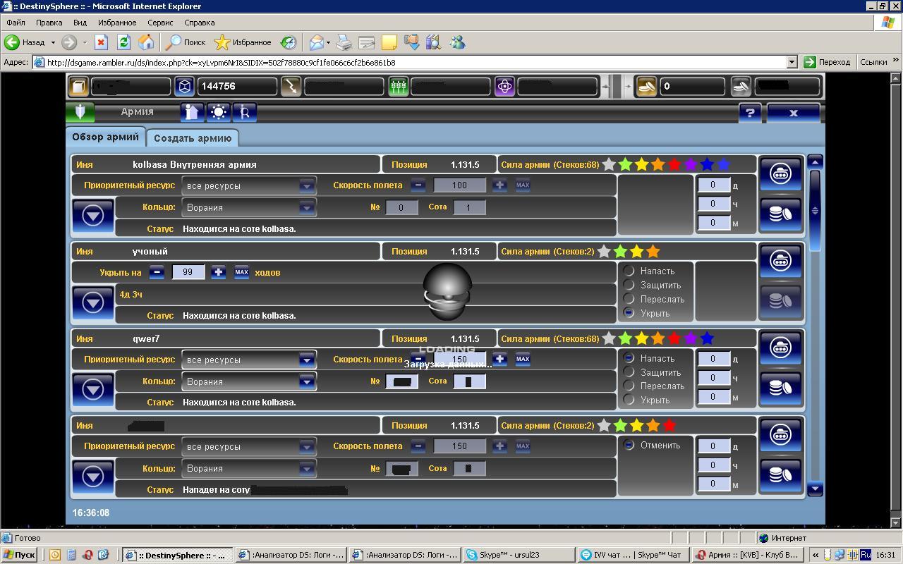 03.12 18:57 - Армия pipecz_tebe вернется на соту kolbasa (1.131.5) с соты хххх (ххххх) игрока хххх через 28м. 41с.. Будет разгружено: СЭ: 52 670.