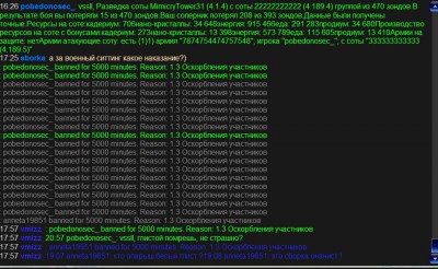 13:37 erinter07: pobedonosec_, Вот я даже переезжать с Дракона не стану,чтобы все знали,что ты не мой мульт! 19:07 vssll: pobedonosec_, anneta19851, erinter07, Igougowego, волк, игрока pobedonosec_ вступит в бой на соте.... ОЙ... Ай... топ психушки прет... ha ha ha... kifir28 ... ОГА?