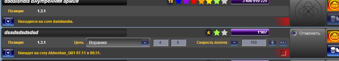 по прежнему мало армий доступно без использования скрола (5 штук). Тип действия (нападение, защита, перемещении и укрытие) можно вывести в отдельный листбокс, разукрасив варианты выбора в разный цвет, что бы можно было по цвету сразу видеть, что выбрано. Так же можно доделать с ресурсом для кражи и кольцами. Строка "Позиция" имхо не оптимизирована и занимает не оправданно много места, так же как и звёзды (вес армии).