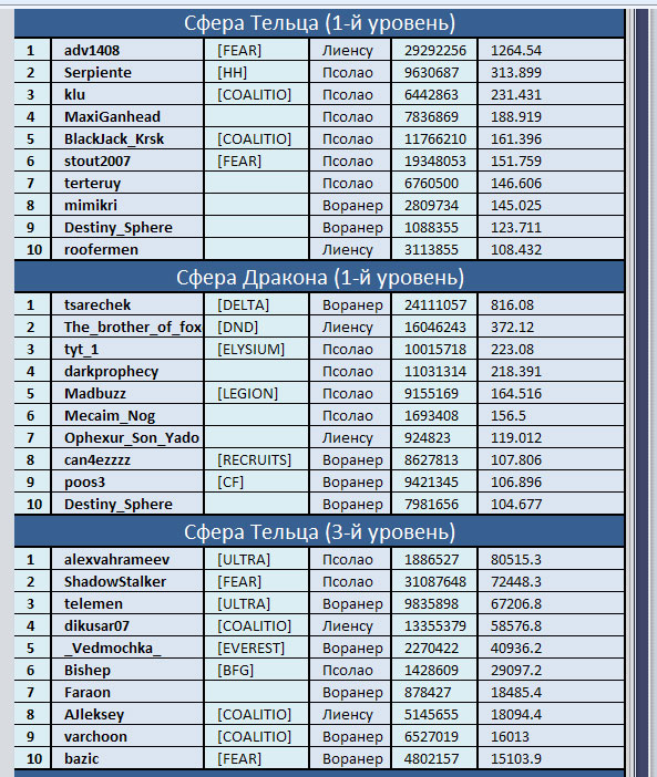 Через месяц Администрация вновь снимет показания боевого рейтинга по всем Сферам.