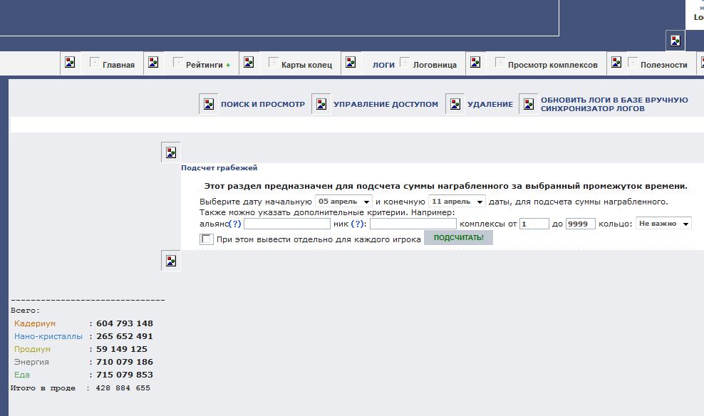 Приведу свою личную статистику вывозов за неделю, логи грабежей можно увидеть в альянсовой логовице.