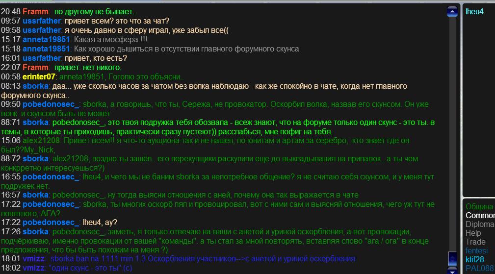 15:06 alex21208: Привет всем!! я что-то аукциона так и не нашел, по юнитам и артам за серебро, кто знает где он был??My_Nick,
