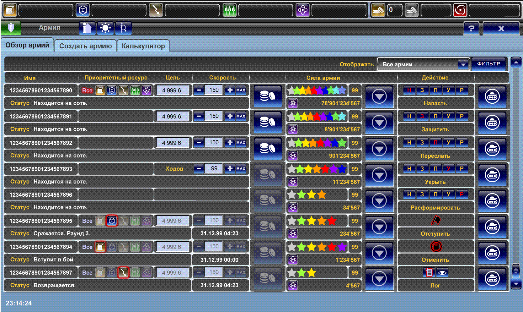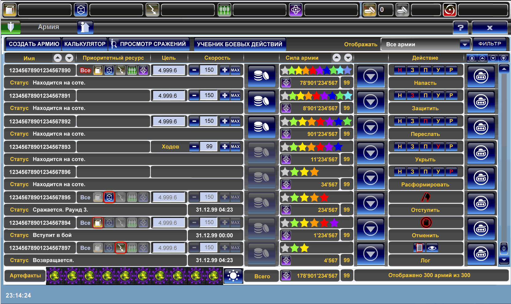 и в добавление - пожелание, чтобы когда армия появилась на соте, она бы сразу становилась доступной для манипуляций, а не висела с надписью "вернулась на соту" и чтоб сделать ее доступной приходиться обновляться, что часто оказывается вредным (когда идет бой на другой соте - получается, что ты сам запускаешь динаму против себя)
