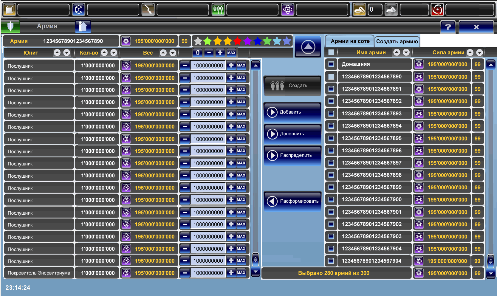 Ну и как вариант я бы предложил создовать армии группами а то запаривает создавать по 1 штуке одинаковые армы.