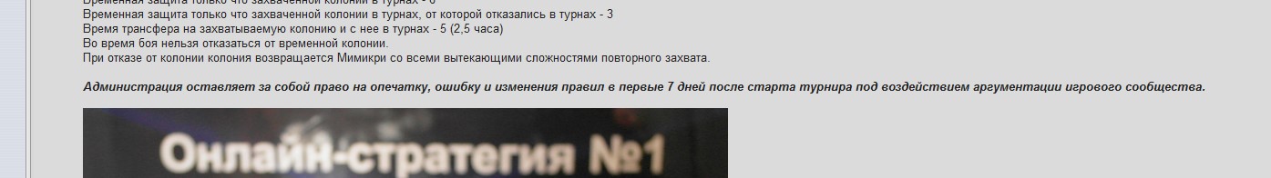 Администрация оставляет за собой право на опечатку, ошибку и изменения правил в первые 7 дней после старта турнира под воздействием аргументации игрового сообщества.