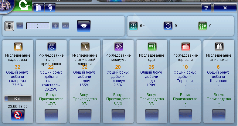 Уровень науки кадериума: -