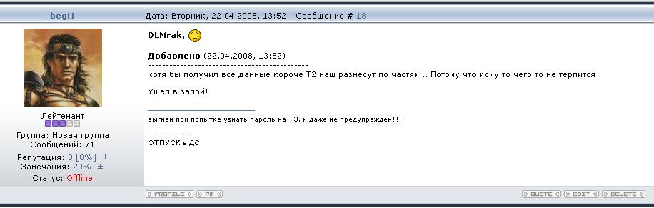 Комментарий к файлу: Вот что begi1 писал на форуме в разгар боёв, которые он сам и инициировал.