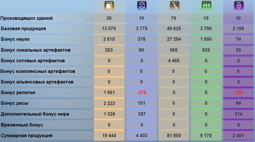 Но уже пишутся бонусы религии на странице "доходы" в убежище: +15% кал, -10% наны, -5% прода... пишутся то пишутся, но в сумму не включены