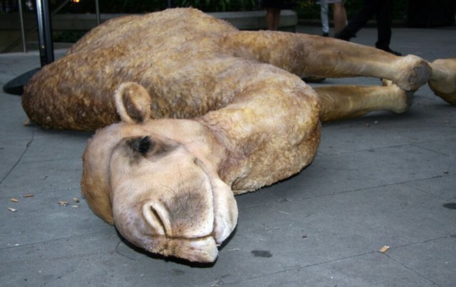 да не. видно же, что верблюд живой. он либо бухой, ли бо еще что... например его только что постригли, он себя в зеркало увидел и об пол ударился