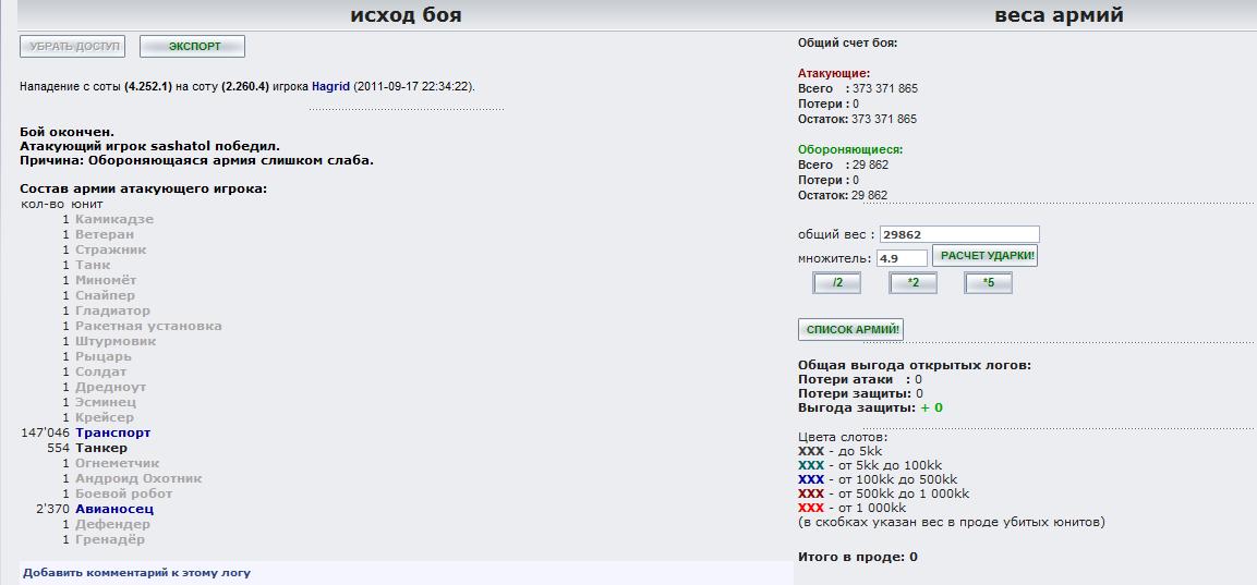 Нападение с соты (4.353.6) на соту (4.252.1) игрока sashatol (2011-09-18 05:23:41).