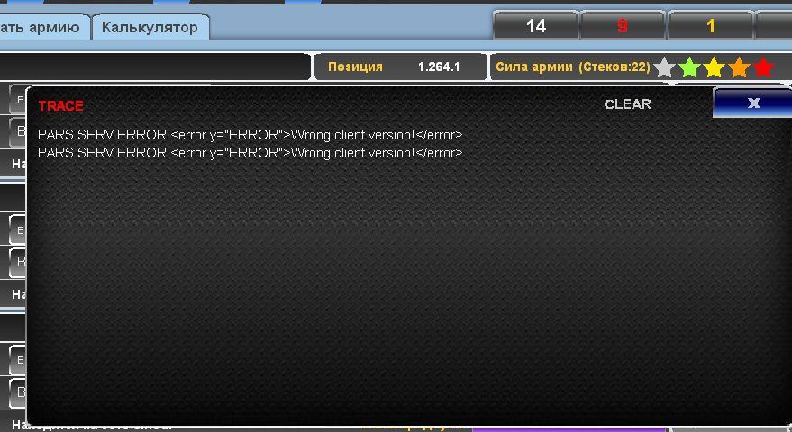 PARS.SERV.ERROR:<error y="ERROR">Wrong client version!</error>