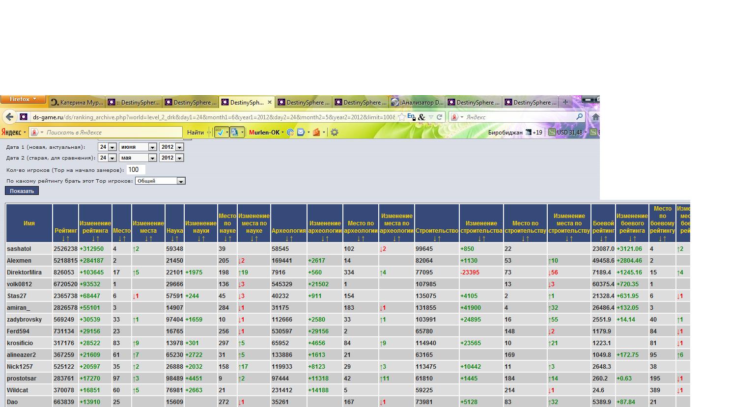 Рост места в археологическом рейтинге