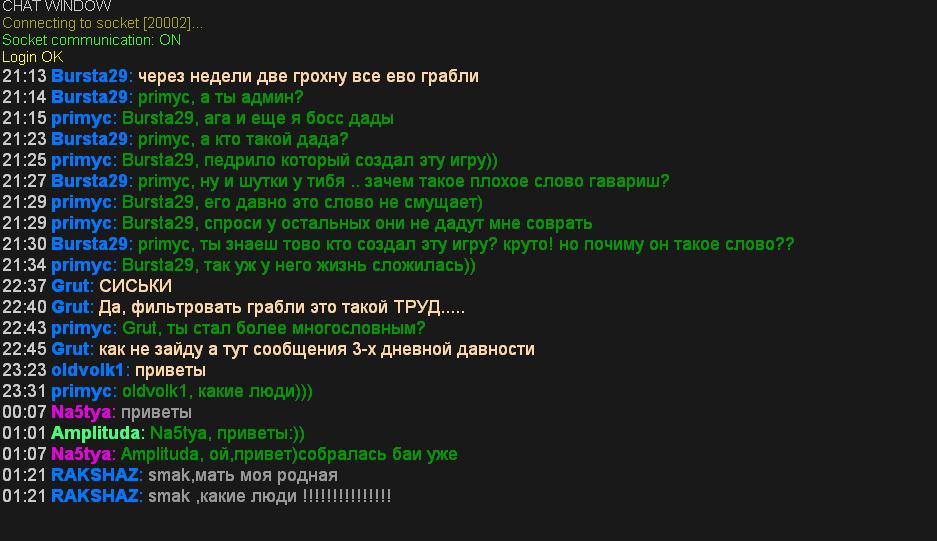 21:59 pobedonosec_: anneta19851, кого то хотел поймать в расплох своим маневром с закрытами воротами))))). две грабилки по 4кк впроде нарвались на его стенку