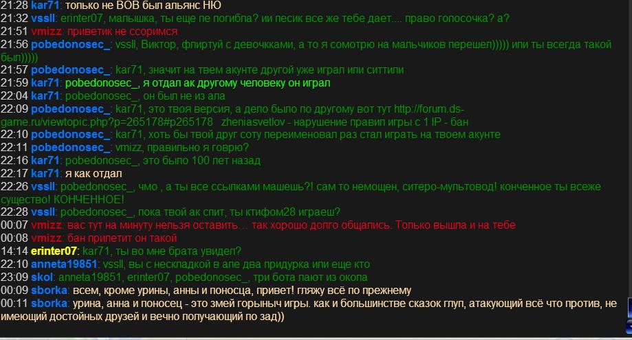 3. как можно добавить игрока в бан лист (личный), если он не отображается в списке присутствующих в чате? просьба добавить в мой бан лист всю эту недоразвитую делегацию (anneta19851, erinter07, pobedonosec_)