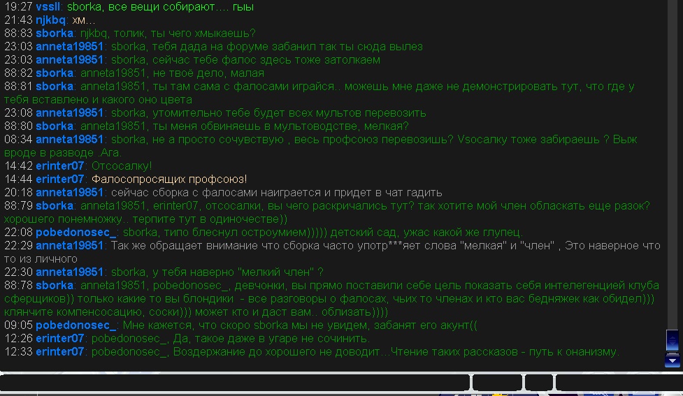 а то складывается впечатление, что они купили этот чат и ведут себя, как непуганное быдло у себя дома..